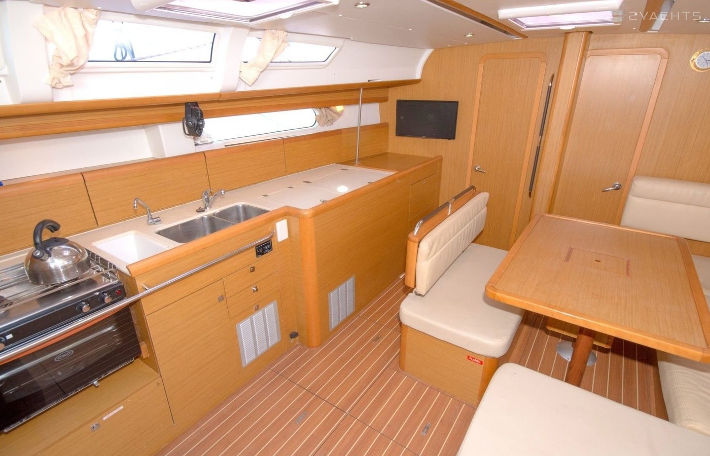 Boat equipment features classical mainsail, bbq, bimini and outside gps plotter. It also boasts a flat screen tv, an audio system, dvd player, outside speakers and inside speakers. The fully-equipped galley includes a freezer, oven, cooker, sink and kitchen utensils.