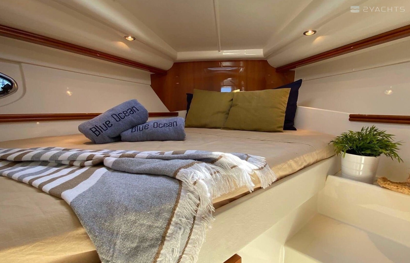 Boat equipment features bimini and bow thruster. It also boasts a flat screen tv, an audio system, outside speakers, free stand up paddleboard and stand up paddle. The fully-equipped galley includes a cooker, sink and kitchen utensils.