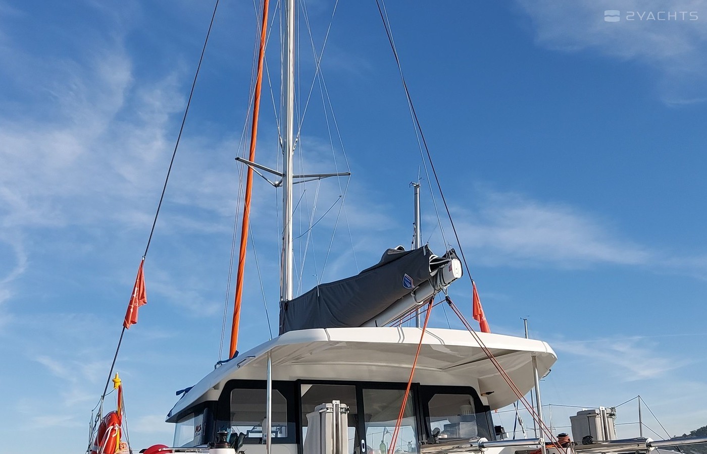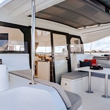 Boat equipment features classical mainsail, bimini and outside gps plotter. It also boasts a flat screen tv, an audio system and outside speakers. The fully-equipped galley includes a freezer, coffee machine, oven, cooker and sink.