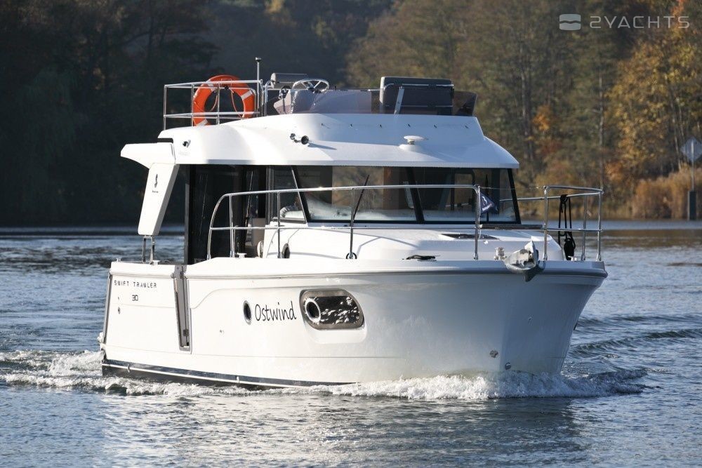The Beneteau Swift Trawler 30 Ostwind houseboat was built in 2016, and it is docked in Waren (Müritz), Germany.