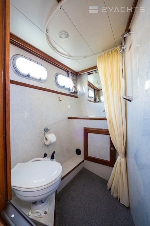 The living area of this houseboat consists of 2 cabins and accommodates 4 people. A shower is at the guests' disposal and there are 2 toilets on board.