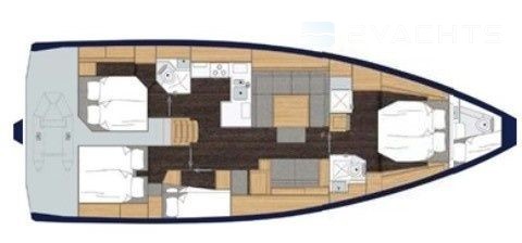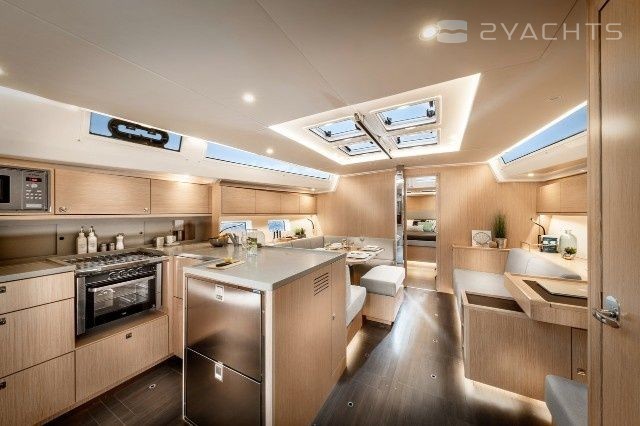 Boat equipment features classical mainsail, generator and bow thruster. It also boasts an air conditioning, an audio system and outside speakers. The fully-equipped galley includes an oven, cooker, sink and kitchen utensils.