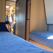 The living area of this houseboat consists of 2 cabins and accommodates 6 people. A shower is at the guests' disposal and there is 1 toilet on board.