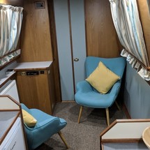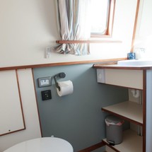 The living area of this houseboat consists of 1 cabins and accommodates 2 people. A shower is at the guests' disposal and there is 1 toilet on board.