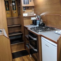 A well-equipped galley with oven, cooker, sink and kitchen utensils is prepared to facilitate cooking. There is also a microwave on board.