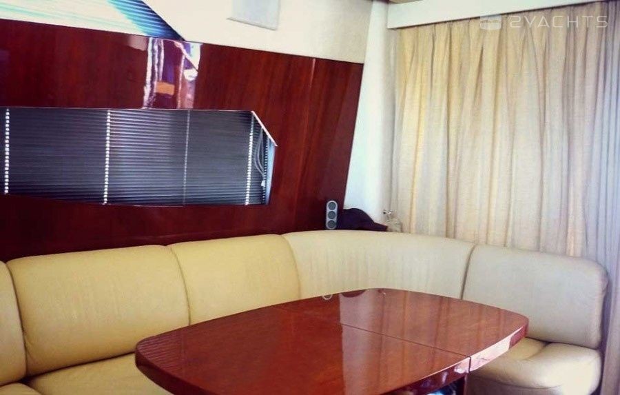 Boat equipment features radar, bimini and outside gps plotter. It also boasts a flat screen tv, an audio system, outside speakers, flybridge and inside speakers. The fully-equipped galley includes an oven, cooker, sink and kitchen utensils.