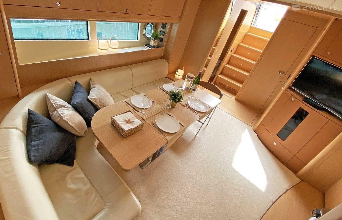 Boat equipment features radar, salon gps plotter, bbq, bimini and bow thruster. It also boasts a flat screen tv, heating, air conditioning, an audio system and dvd player. The fully-equipped galley includes a microwave, dishwasher, ice maker, freezer and coffee machine.