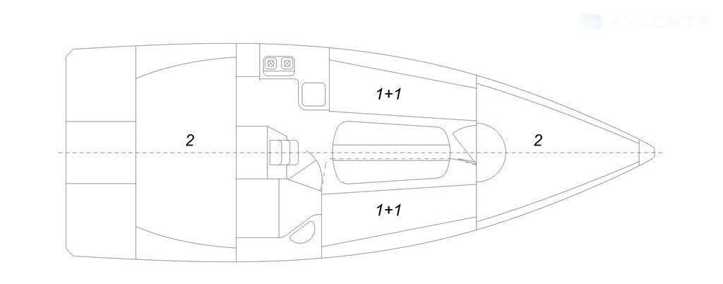 26 can accommodate up to 8 people in 2 double cabins and a saloon with 4 extra beds.