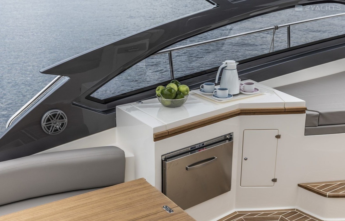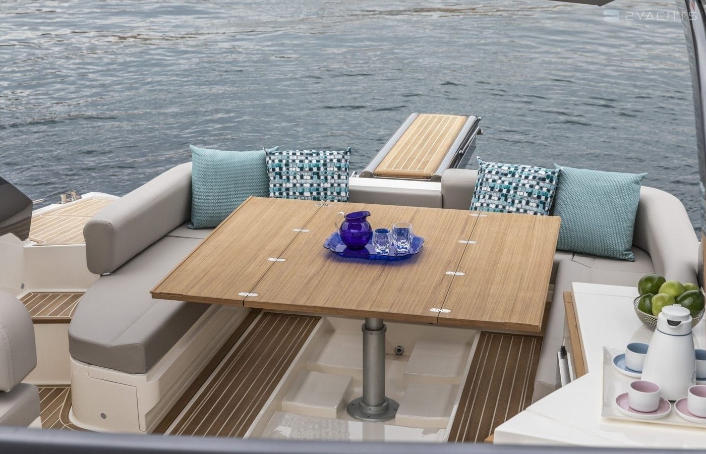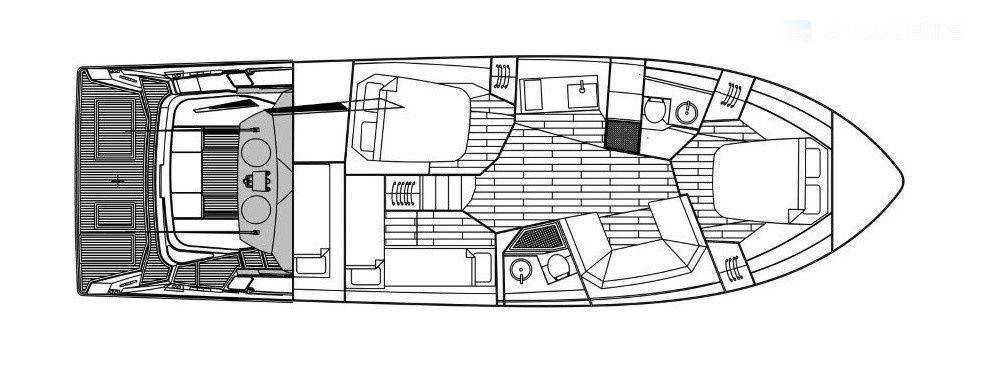 Boat equipment features radar, generator, bbq, bimini and bow thruster. It also boasts a flat screen tv, heating, air conditioning, an audio system and outside speakers. The fully-equipped galley includes an ice maker, freezer, coffee machine, cooker and kitchen utensils.