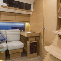 Boat equipment features classical mainsail, solar panels, bimini and bow thruster. It also boasts a flat screen tv, an audio system, dvd player, outside speakers and inside speakers. The fully-equipped galley includes an oven, cooker, sink and kitchen utensils.