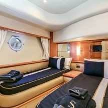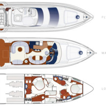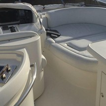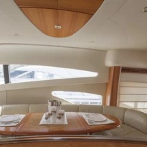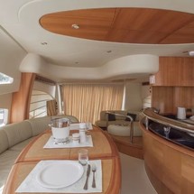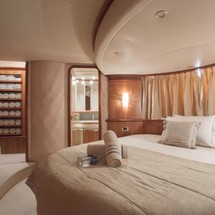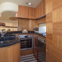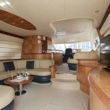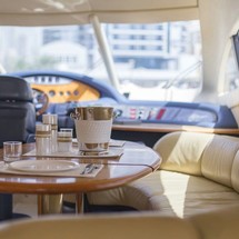 Boat equipment features radar, generator, salon gps plotter, bbq and bimini. It also boasts a flat screen tv, heating, air conditioning, washing machine and audio system. The fully-equipped galley includes a microwave, dishwasher, ice maker, freezer and oven.