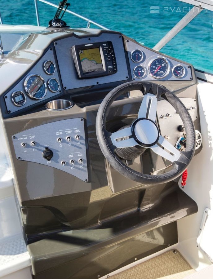 Boat equipment features bimini and bathing platform. It also boasts a heating, an audio system and inside speakers. The fully-equipped galley includes a microwave, cooker, sink and kitchen utensils.