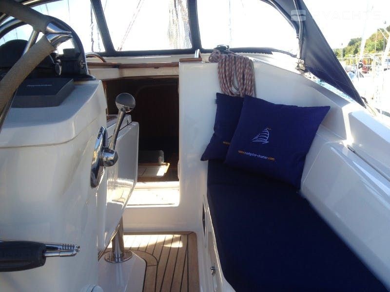 Boat equipment features rolling mainsail, solar panels, salon gps plotter, bimini and outside gps plotter. It also boasts an an audio system, outside speakers and inside speakers. The fully-equipped galley includes an oven, cooker, sink and kitchen utensils.