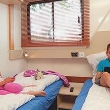 The living area of this houseboat consists of 4 cabins and accommodates 9 people. A shower is at the guests' disposal and there are 4 toilets on board.