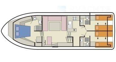 This houseboat is equipped with bimini and bow thruster. In chilly weather, guests will benefit from heating. an audio system, dvd player, outside speakers, flybridge and inside speakers are also available.