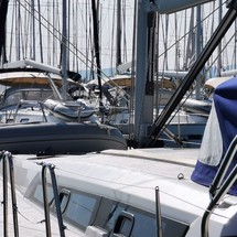 Boat equipment features rolling mainsail, salon gps plotter, bimini and bow thruster. It also boasts a flat screen tv, an audio system, dvd player and outside speakers. The fully-equipped galley includes an oven, cooker, sink and kitchen utensils.