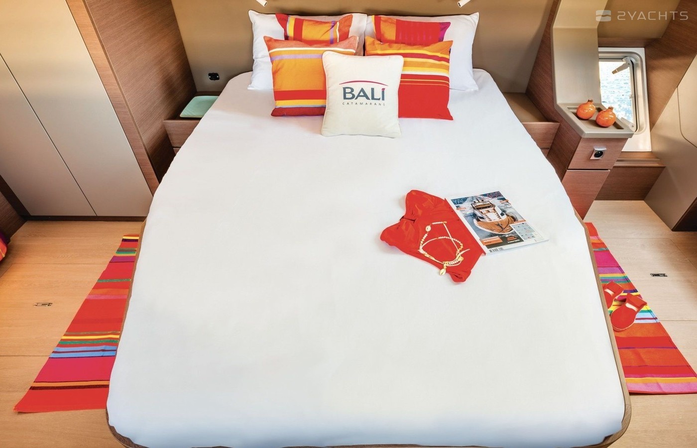 4-cabin catamaran Bali 4.8 - Carnovale was built in 2023, and it is docked in Marina di Portorosa, Italy.
