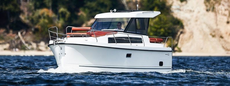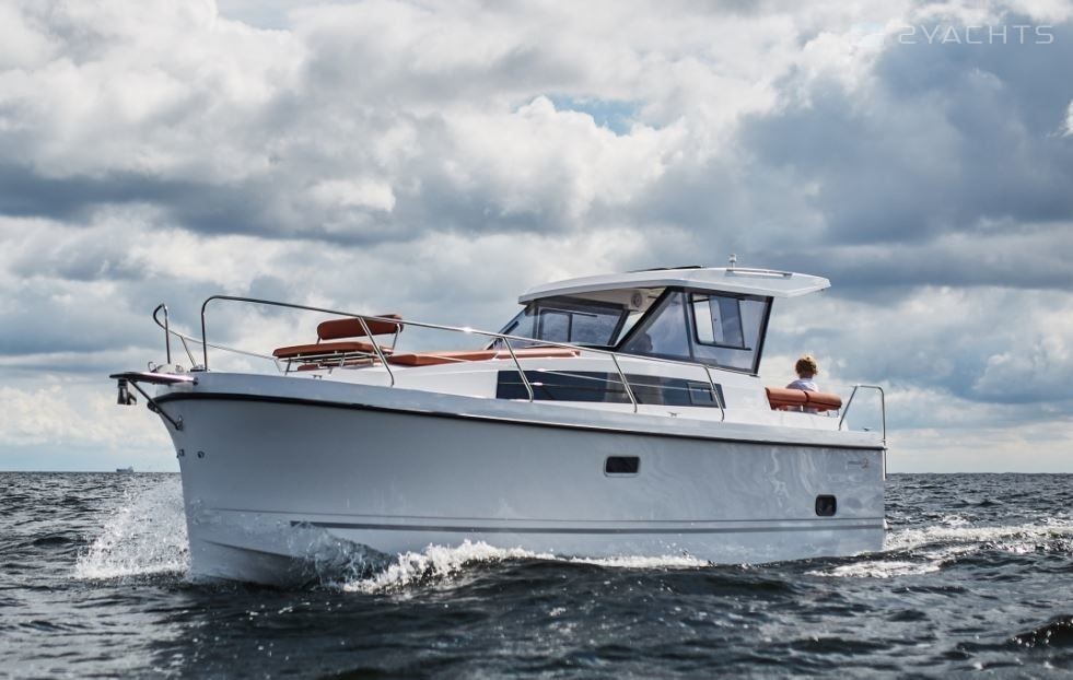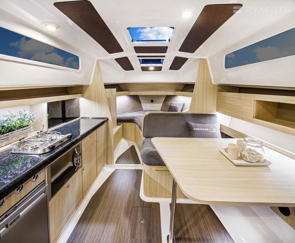 2-cabin motor yacht Northman Nexus Revo 870 - Rapa Nui was built in 2020, and it is docked in Port AZS Wilkasy, Poland.
