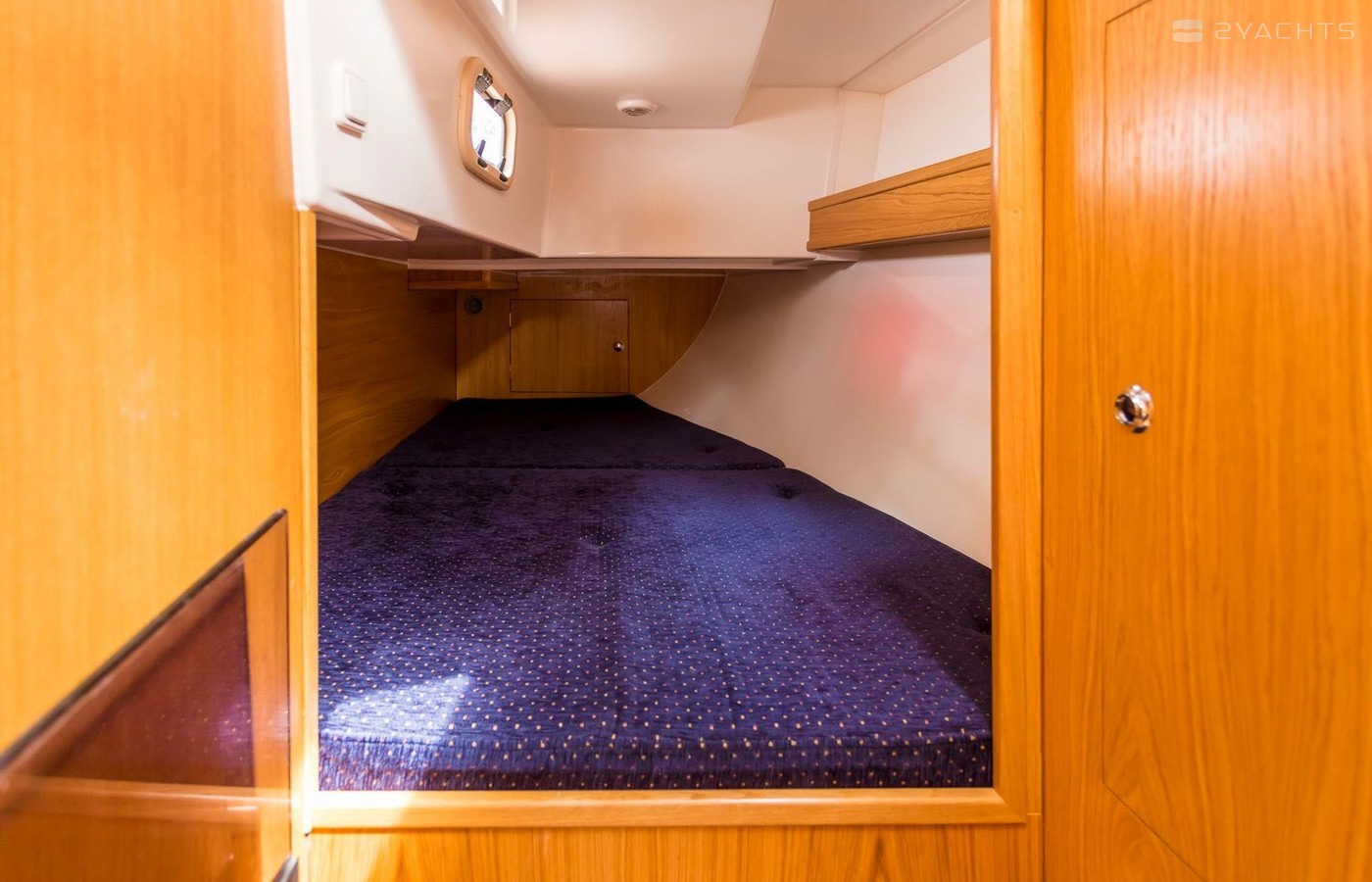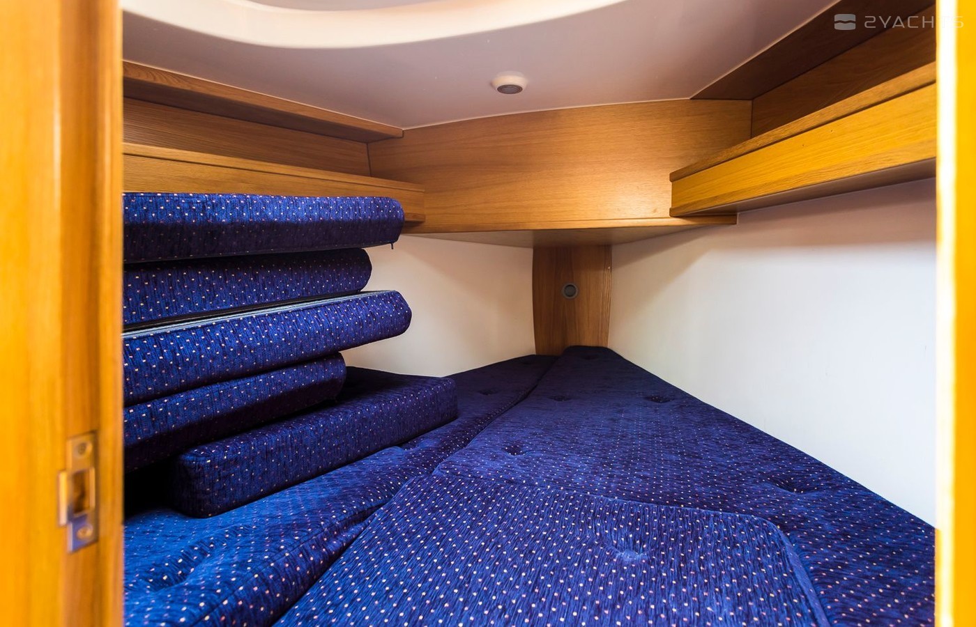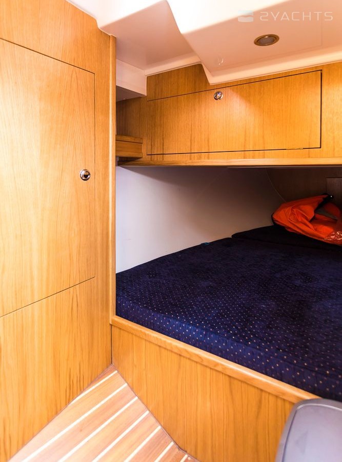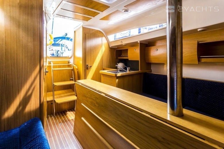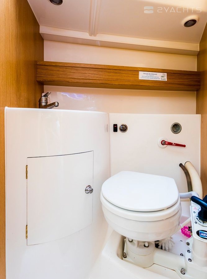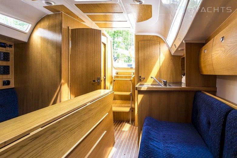 Boat equipment features classical mainsail. It also boasts a heating, an audio system and inside speakers. The fully-equipped galley includes a cooker, sink and kitchen utensils.