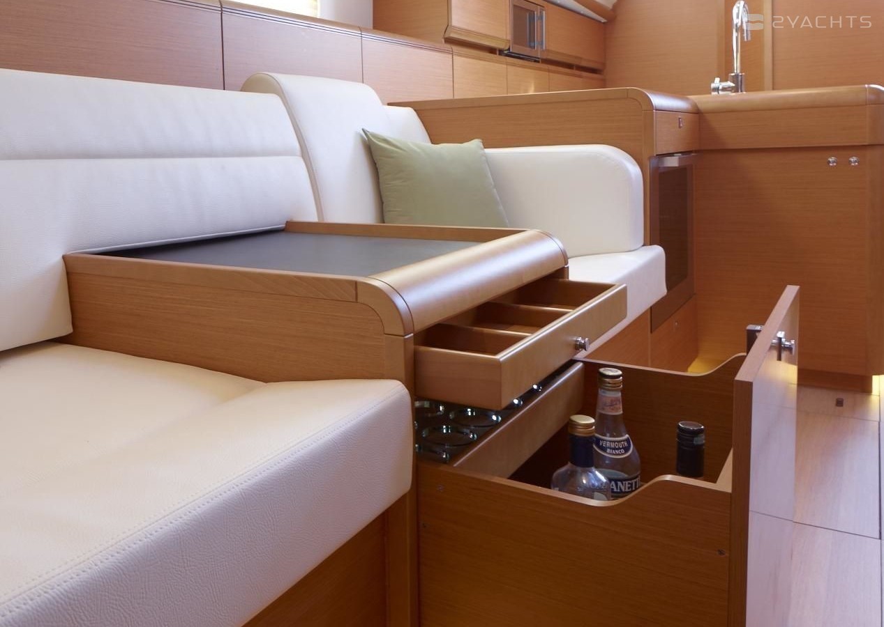 Boat equipment features rolling mainsail, radar, salon gps plotter and bow thruster. It also boasts a heating, an audio system and inside speakers. The fully-equipped galley includes an oven, cooker, sink and kitchen utensils.