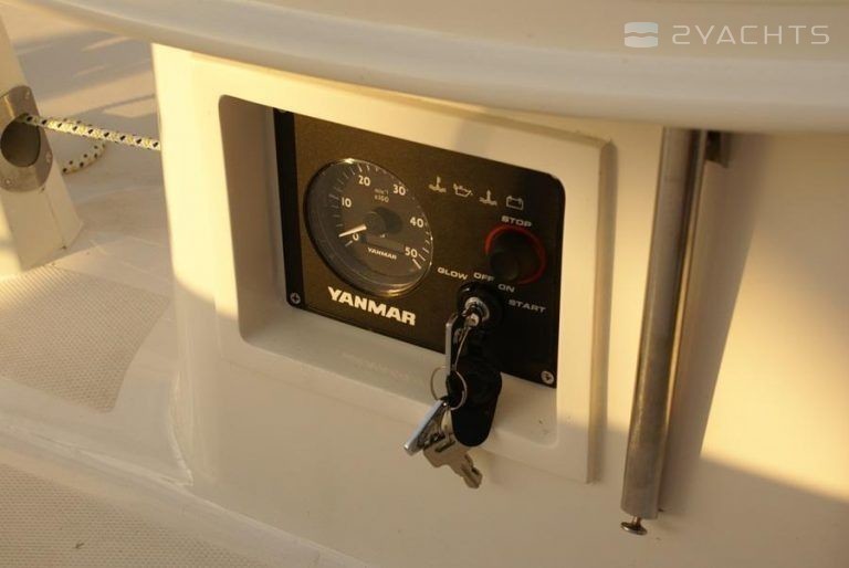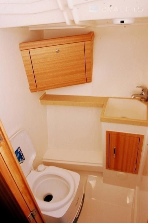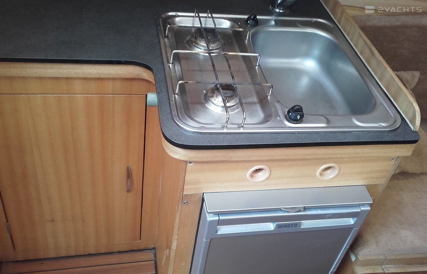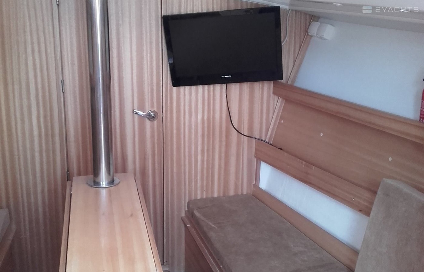 Boat equipment features classical mainsail and bow thruster. It also boasts a flat screen tv, heating, an audio system and inside speakers. The fully-equipped galley includes a cooker, sink and kitchen utensils.