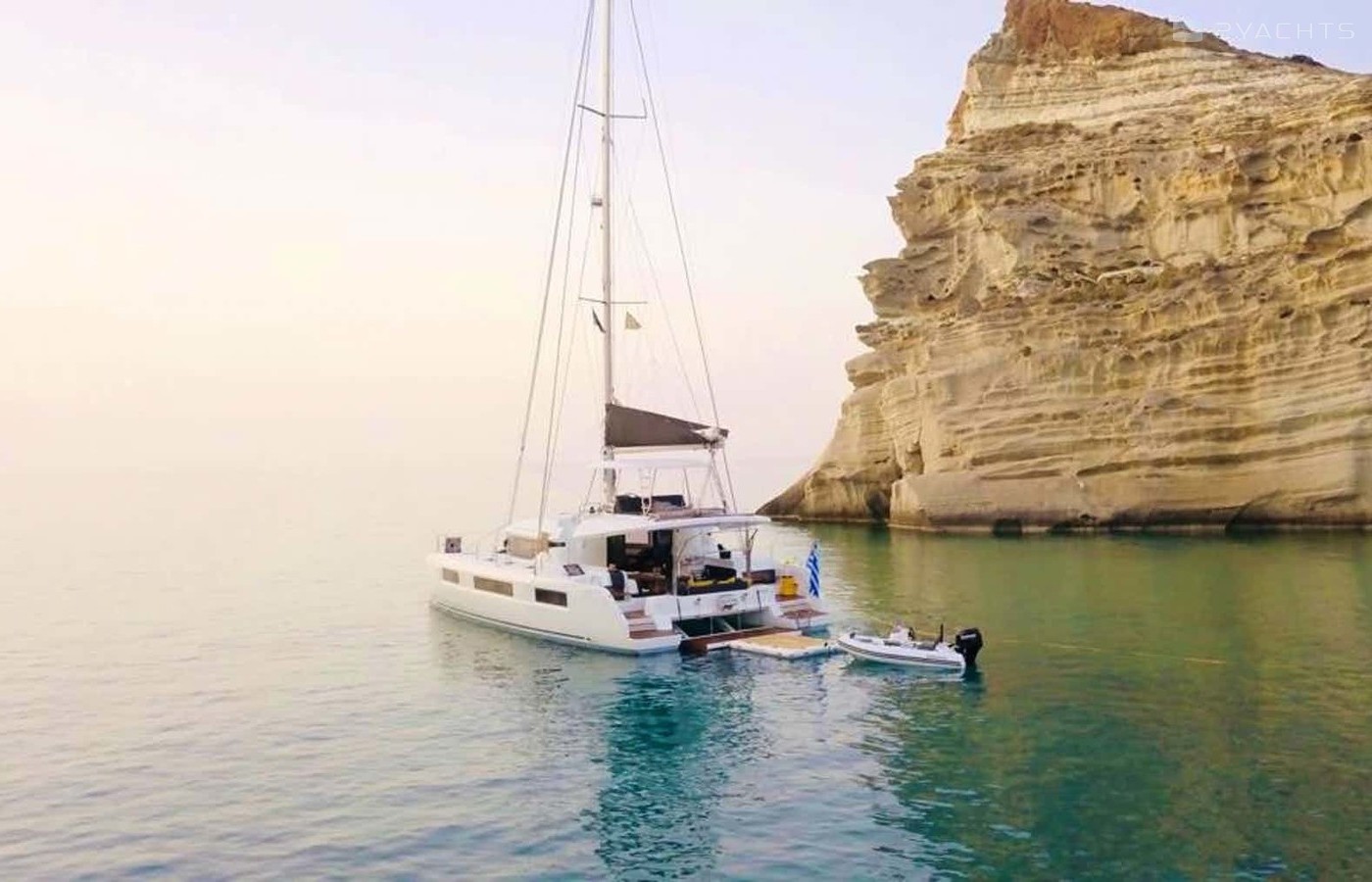 5-cabin catamaran Lagoon 50 - Ozelo was built in 2021, and it is docked in Lefkas Marina, Greece.