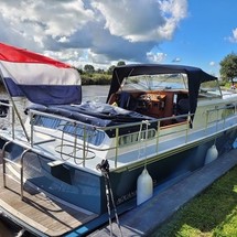 The Aquanaut 900 Barones houseboat was built in 1985, and it is docked in Jachthaven De Welle, Netherlands.
