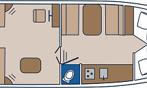 The living area of this houseboat consists of 2 cabins and accommodates 5 people.