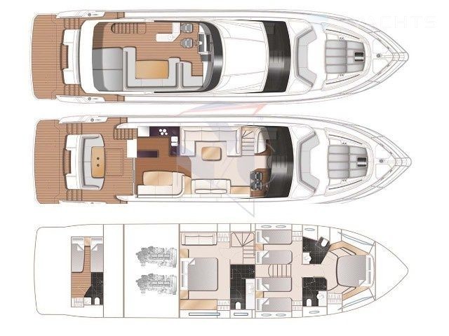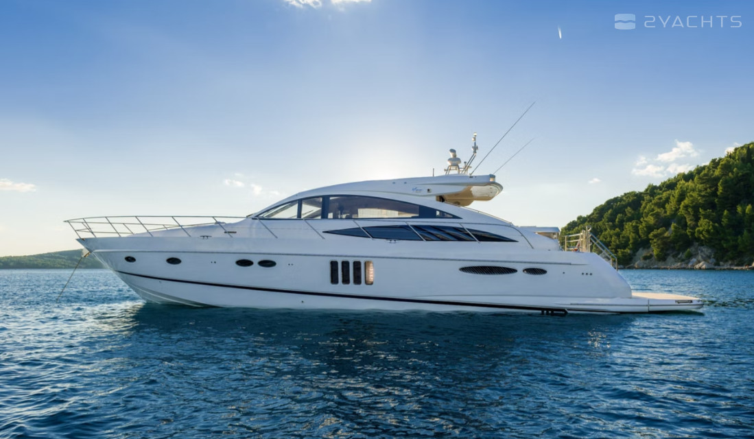 3-cabin motor yacht Princess V65 - Princess Mary was built in 2009, (renovated in 2021,) and it is docked in Ornos Bay, Greece.