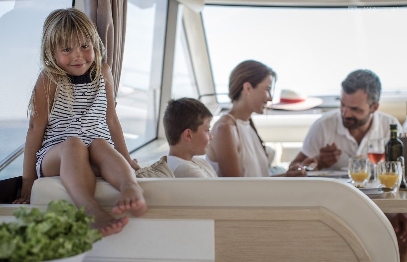 Boat equipment features solar panels, salon gps plotter and bow thruster. It also boasts a heating, air conditioning, an audio system, outside speakers and inside speakers. The fully-equipped galley includes a microwave, oven, cooker, sink and kitchen utensils.