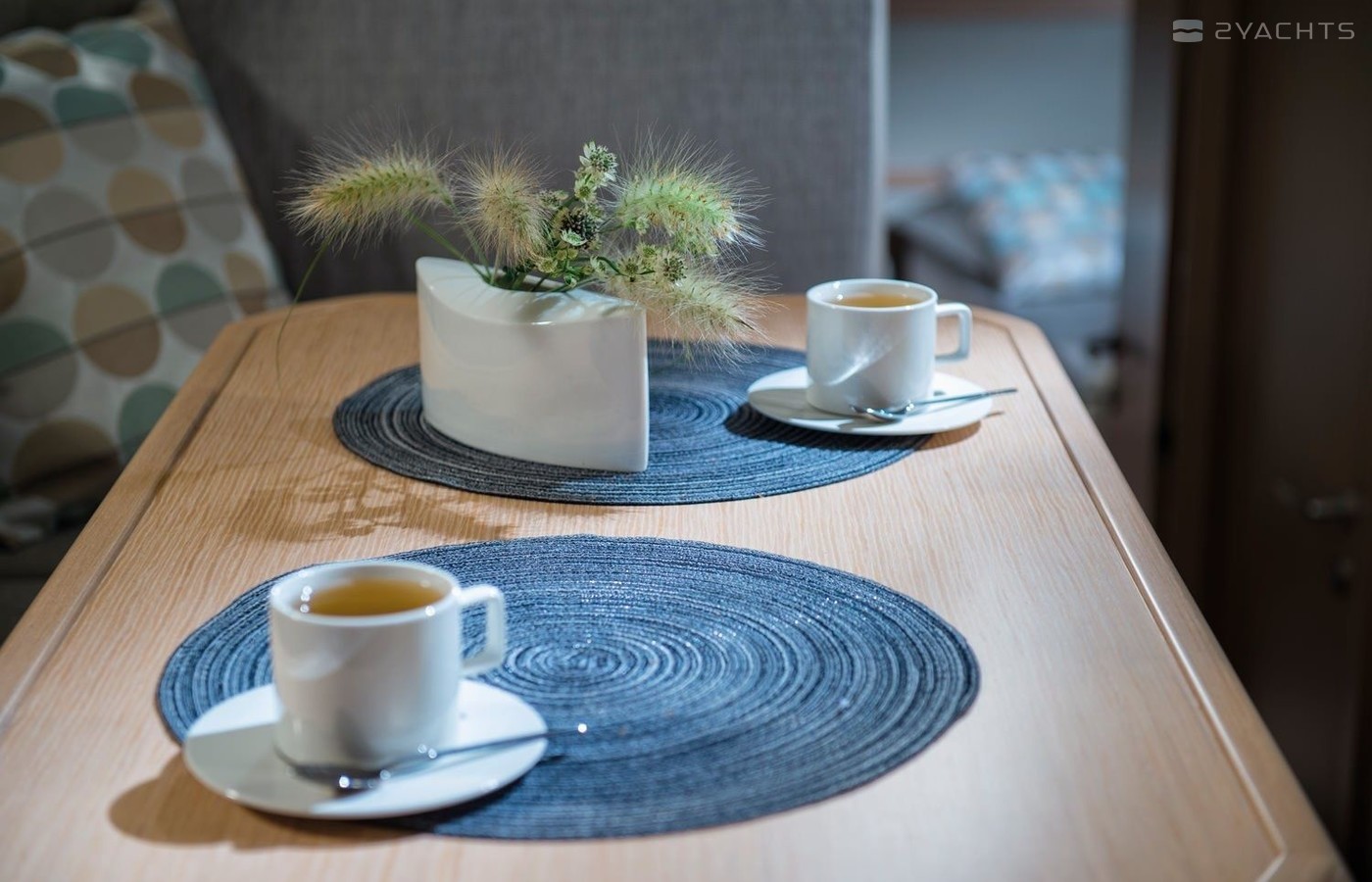Blandona can accommodate up to 6 people in 2 double cabins and a saloon with 2 extra beds. Pillows and blankets are included in the price.