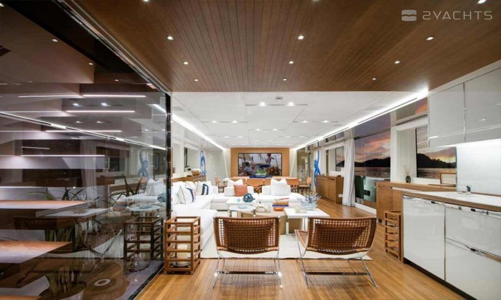 Boat equipment features radar, generator, salon gps plotter, bbq and bimini. It also boasts a flat screen tv, heating, air conditioning, washing machine and audio system. The fully-equipped galley includes a dishwasher, ice maker, freezer, coffee machine and oven.