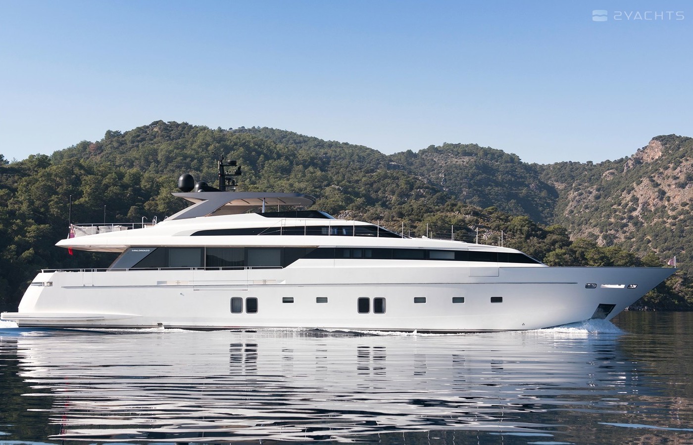 5-cabin motor yacht Sanlorenzo 126 - Morning Star was built in 2018, and it is docked in Bodrum City Harbour, Turkey.