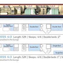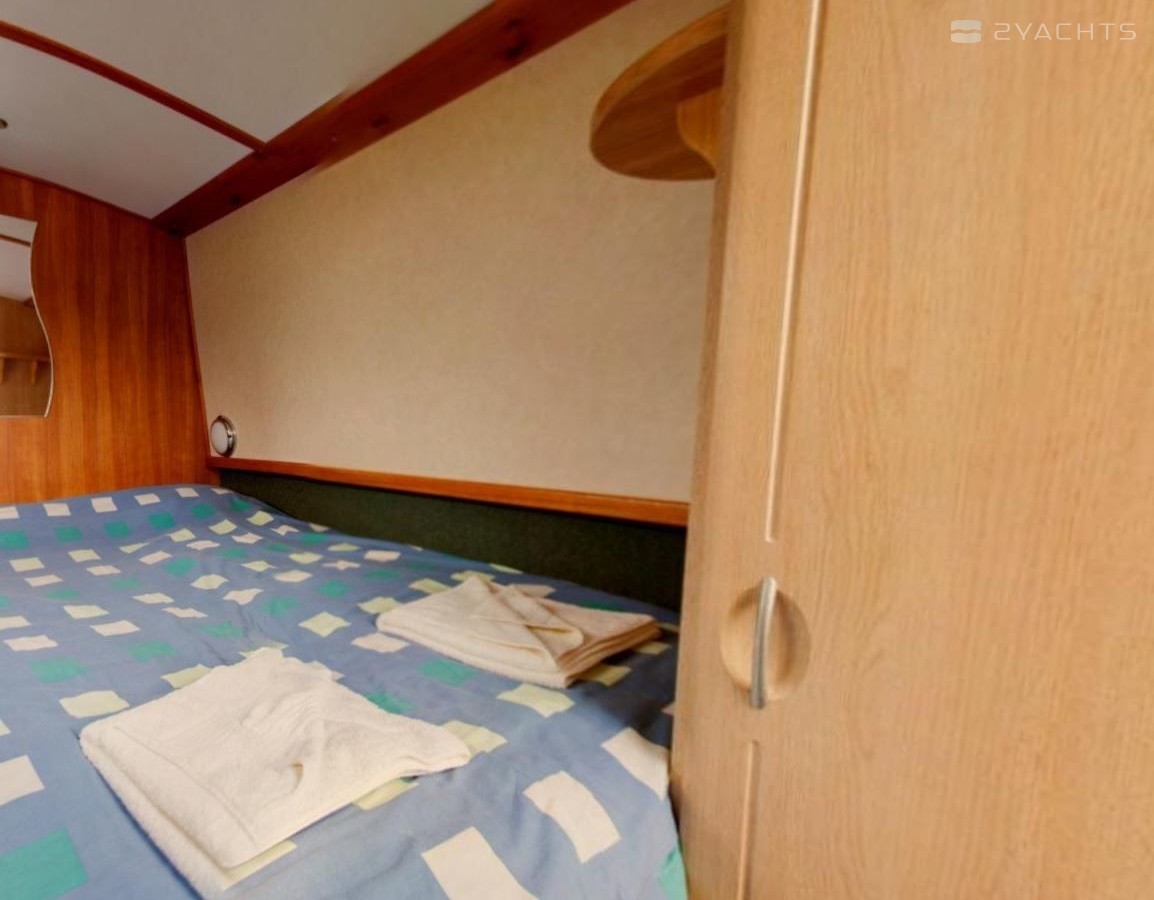 The living area of this houseboat consists of 2 cabins and accommodates 6 people. A shower is at the guests' disposal and there is 1 toilet on board.