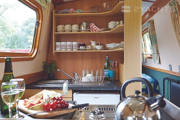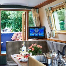 This houseboat is operated by the charter company Black Prince Narrowboat Holidays.