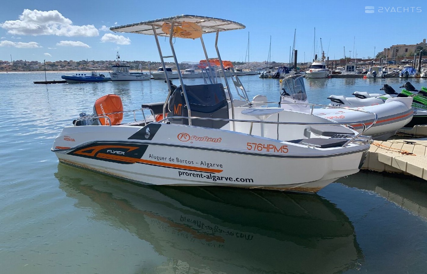 This motorboat is operated by the charter company Pro Rent.