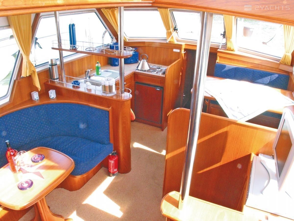 The living area of this houseboat consists of 3 cabins and accommodates 6 people. A shower is at the guests' disposal and there are 2 toilets on board.