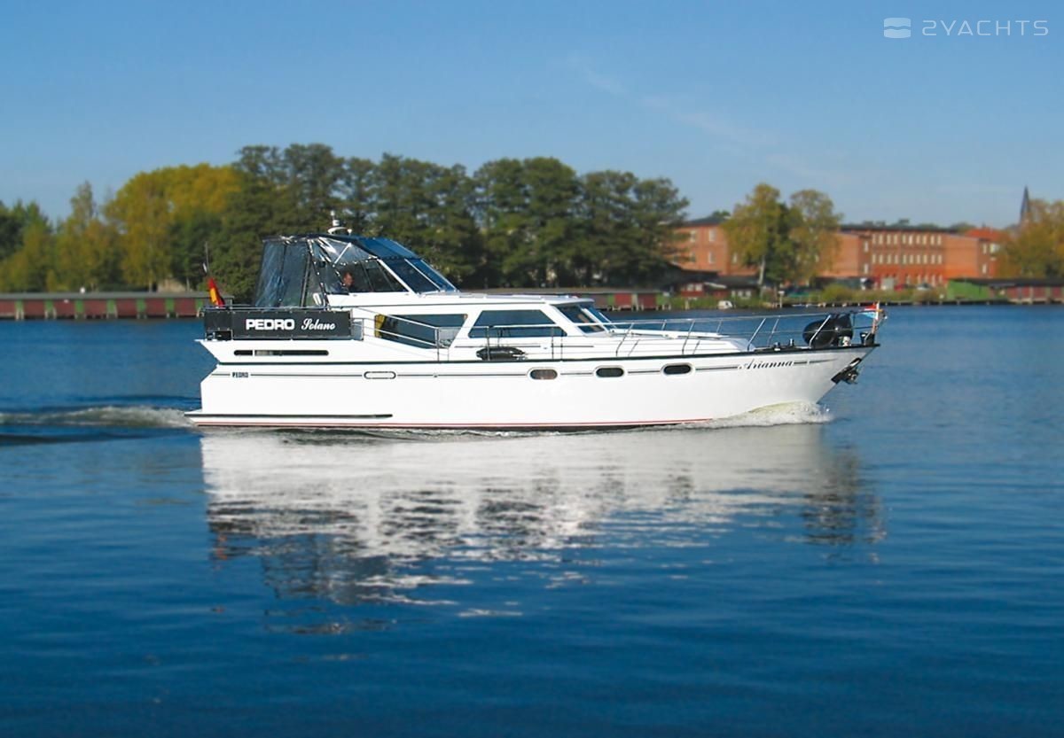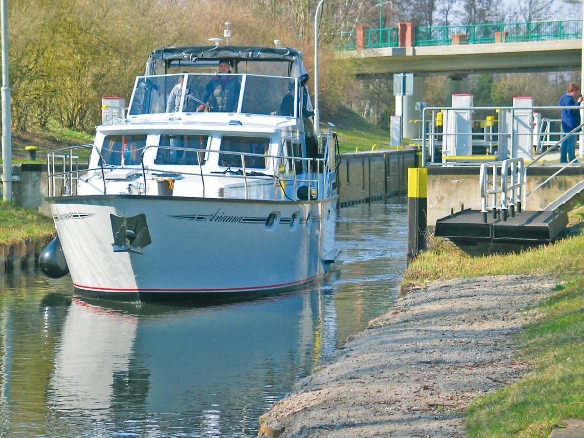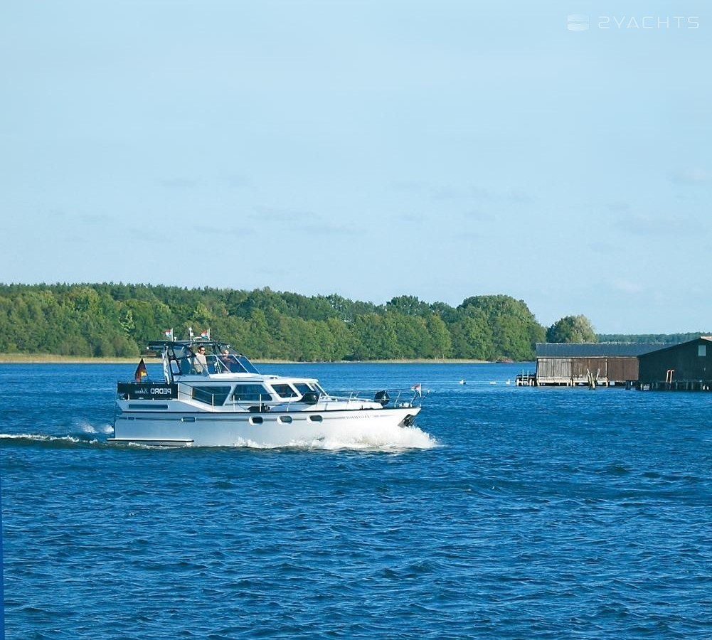The Pedro Solano 38 Arianna houseboat was built in 2003, and it is docked in Hafen Neukalen, Germany.