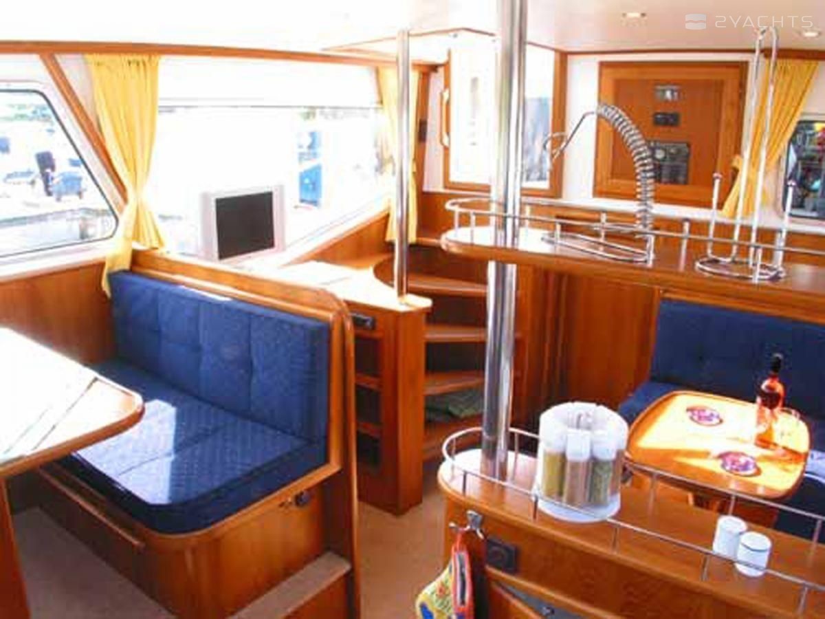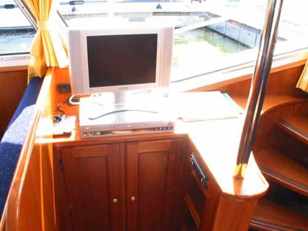 This houseboat is equipped with bimini and bow thruster. In chilly weather, guests will benefit from heating. flat screen tv, an audio system and inside speakers are also available.