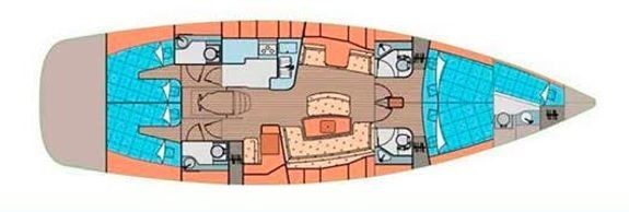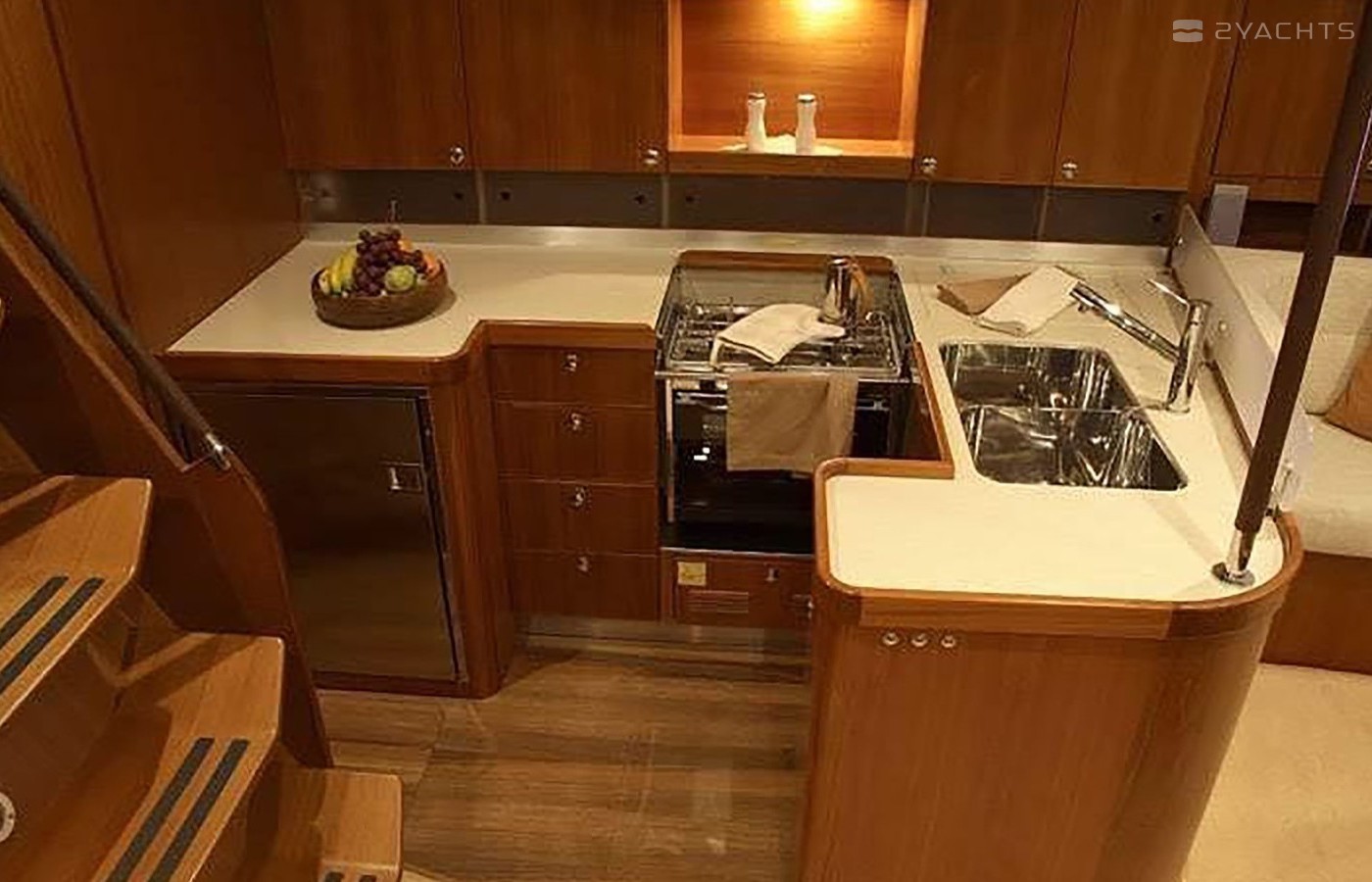 Boat equipment features classical mainsail, radar, bimini and bow thruster. It also boasts an an audio system, outside speakers and inside speakers. The fully-equipped galley includes a freezer, oven, cooker, sink and kitchen utensils.