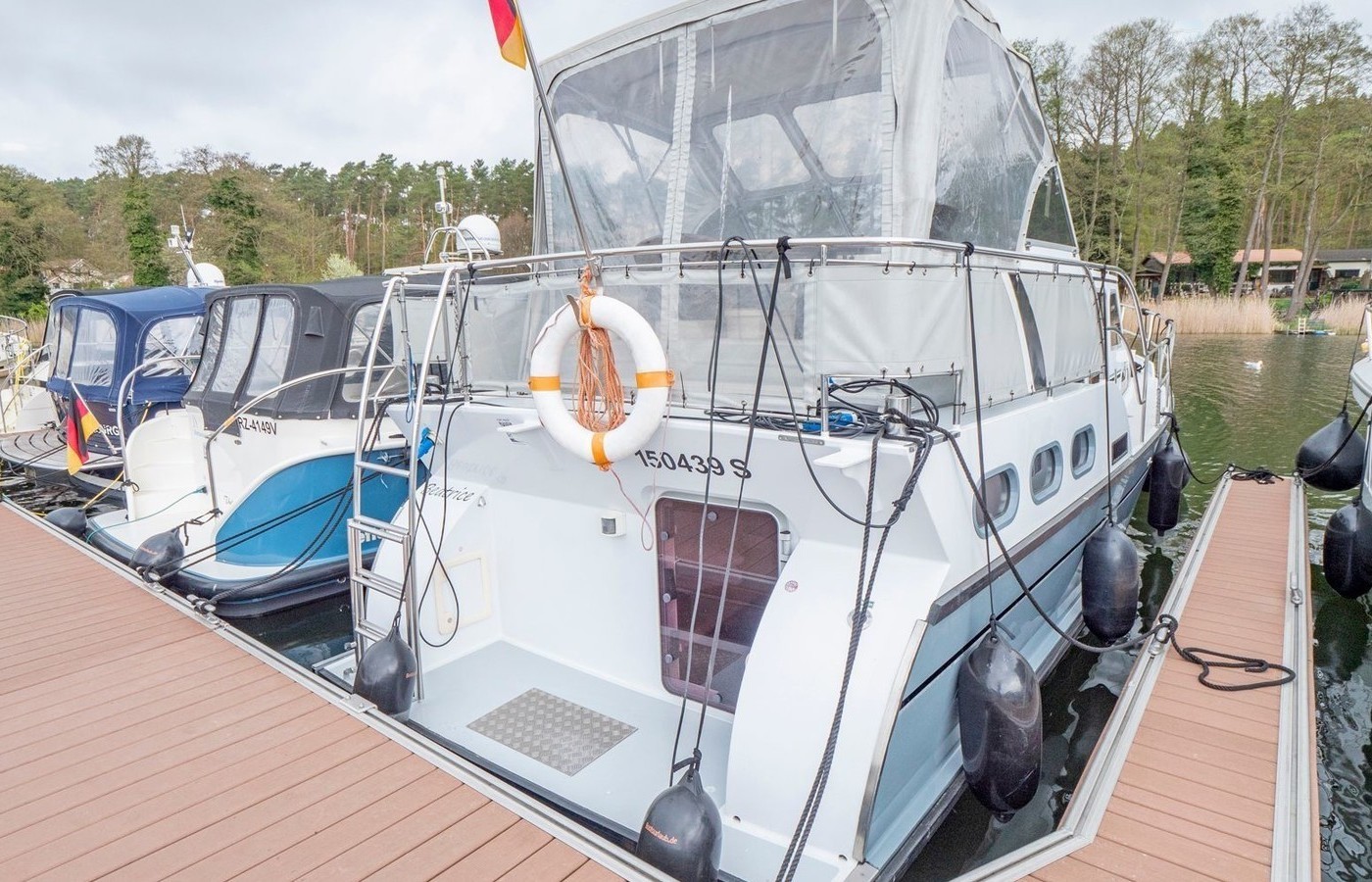 This houseboat is operated by the charter company Yachtcharter Schulz.