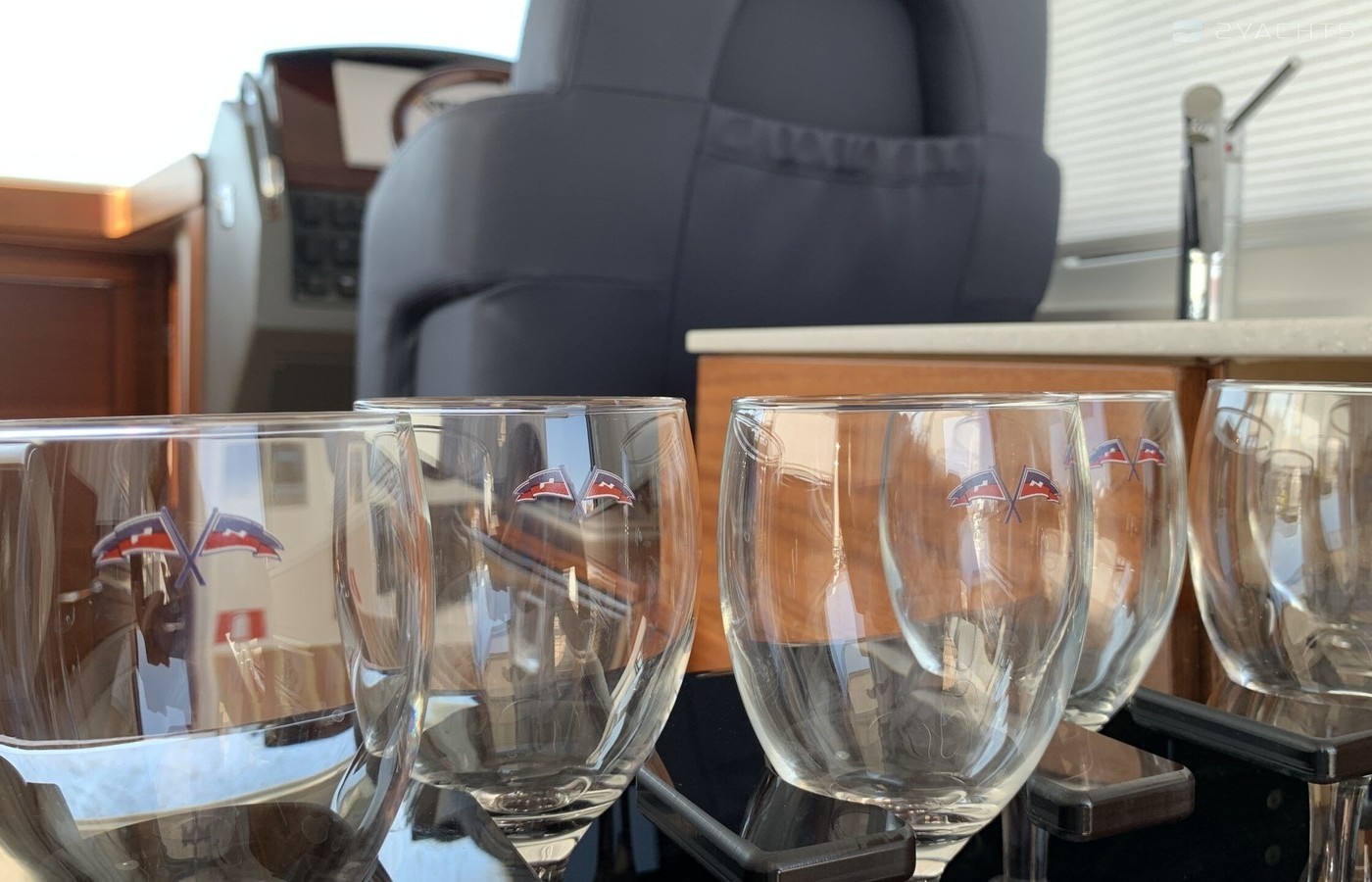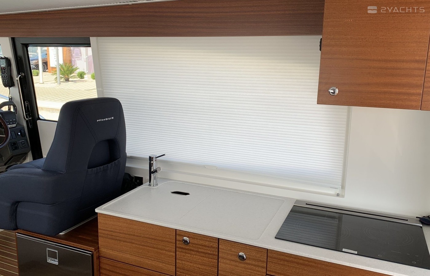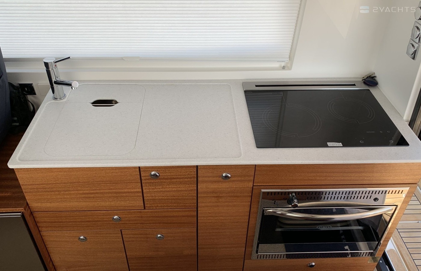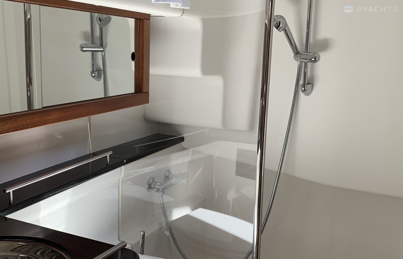 Boat equipment features salon gps plotter, bimini and bow thruster. It also boasts a flat screen tv, an audio system, dvd player, outside speakers and inside speakers. The fully-equipped galley includes a dishwasher, oven, cooker, sink and kitchen utensils.