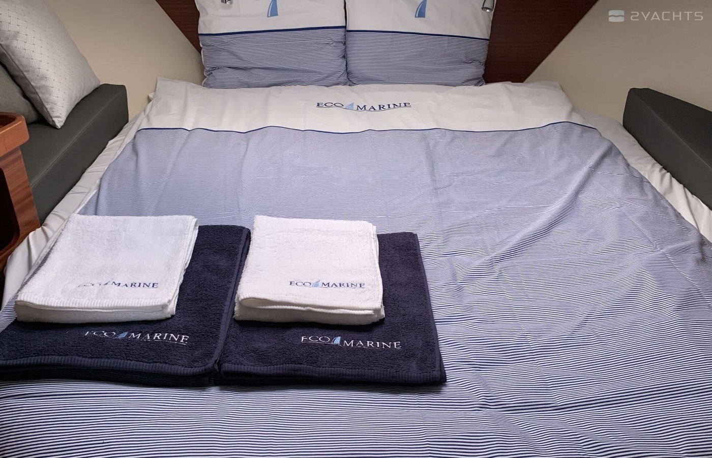 Four Lux can accommodate up to 6 people in 2 double cabins and a saloon with 2 extra beds. Pillows and blankets are included in the price.