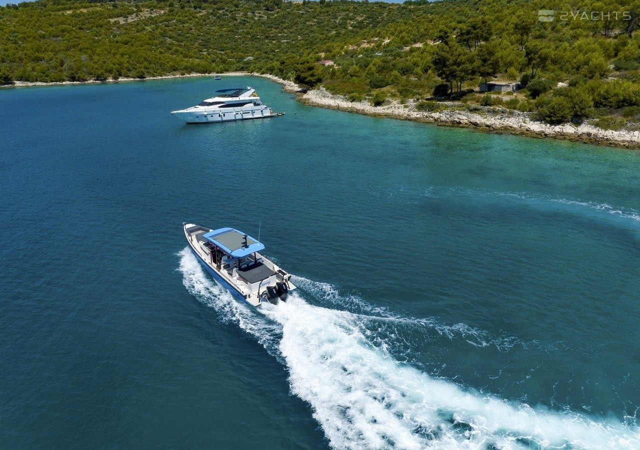 This 2019 Axopar 37 Sun Top - Sunny is suitable for 2 people. It is docked in ACI Marina Split, Croatia.