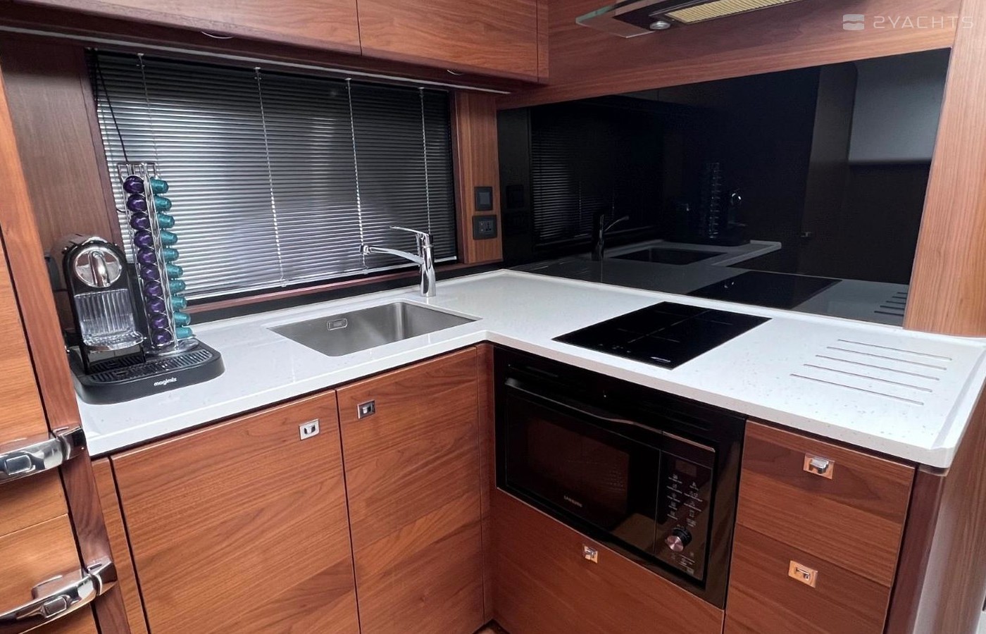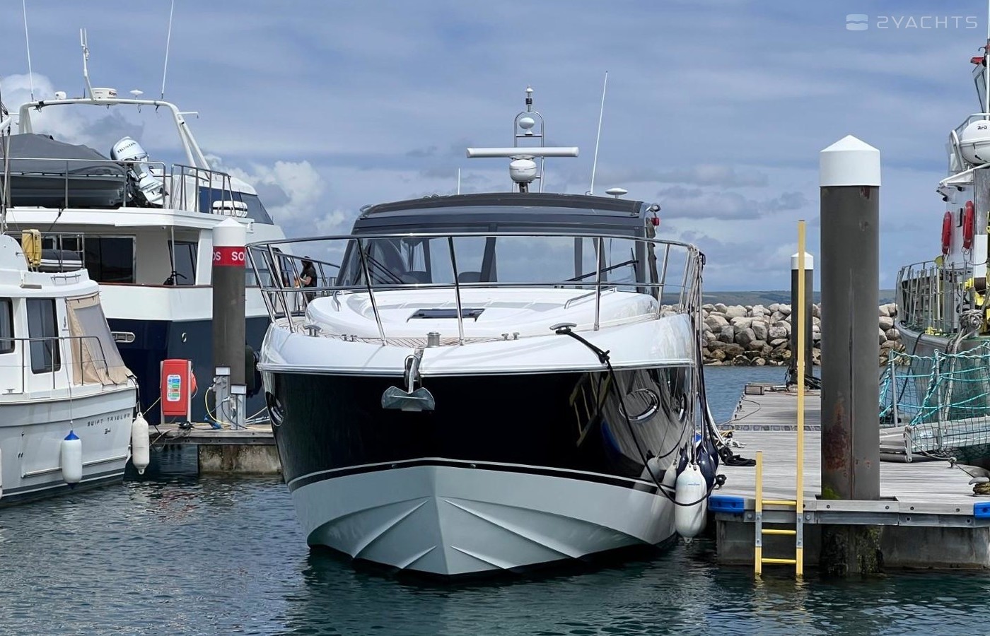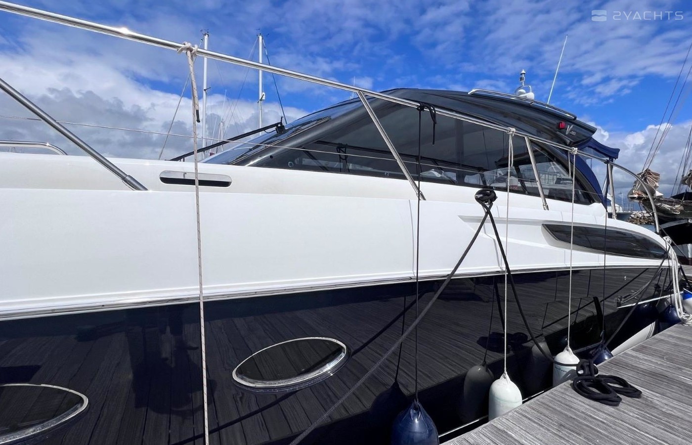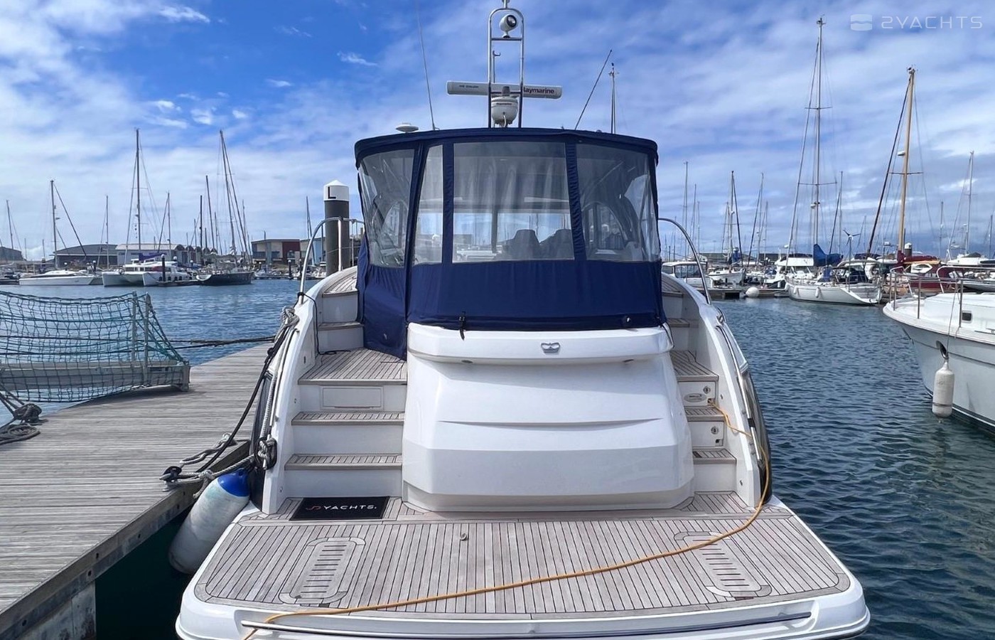 Rare 2 Cabin Version Seakeeper Gyro StabilizerSide-Power Proportional Speed Control SystemElectro-Hydraulic Bathing PlatformCockpit IcemakerRaymarine e165 15.4'' HyBrid Touch GPS Chartplotter/Radar DisplayRaymarine Digital RadarSide Power Variable Speed Bow ThrusterDepth LogRaymarine Autopilot AISOnan 11Kw GeneratorReverse Cycle Tropical Air Conditioning Electric Cockpit AwningPasserelleUnder Water LightsTeak Side DecksHolding Tank