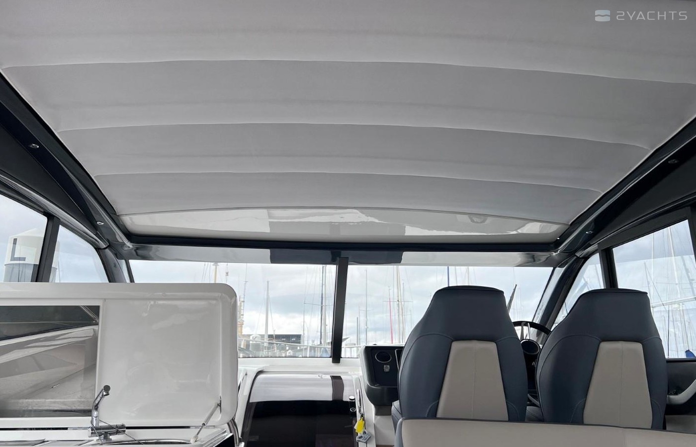 Helm seat with sit/stand facilityFull engine instrumentationFuel gaugesSingle-lever engine controlsJoystick maneuvering controlRudder position indicatorPower-assisted steering system and adjustable steering wheelRemote control anchor winchTrim tab controls with indicatorsVHF with DSC R/TSpeed and distance logEcho sounder with alarmRemote control searchlightHigh speed compassHorn buttonChart areaTwin windscreen wipersWindscreen freshwater pressure washBilge pump controls with visual ‘pump running’ indicator (3)Electric side window
