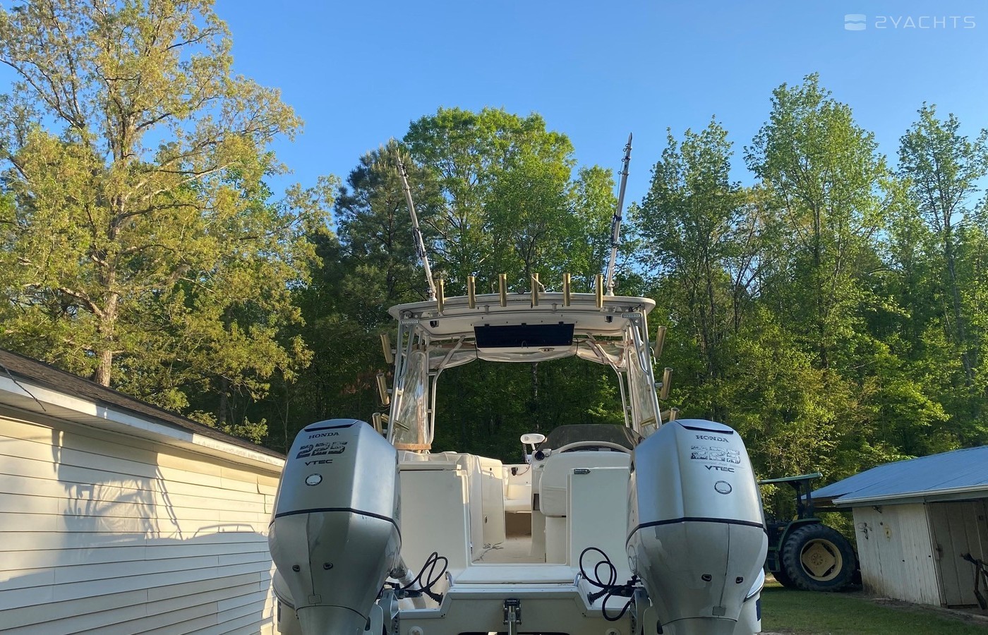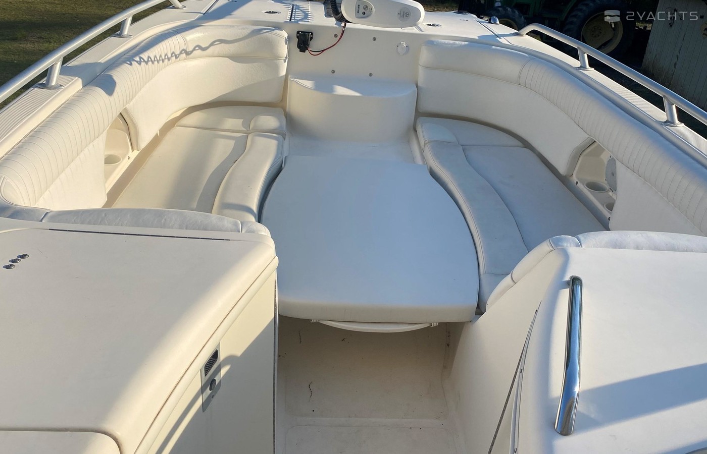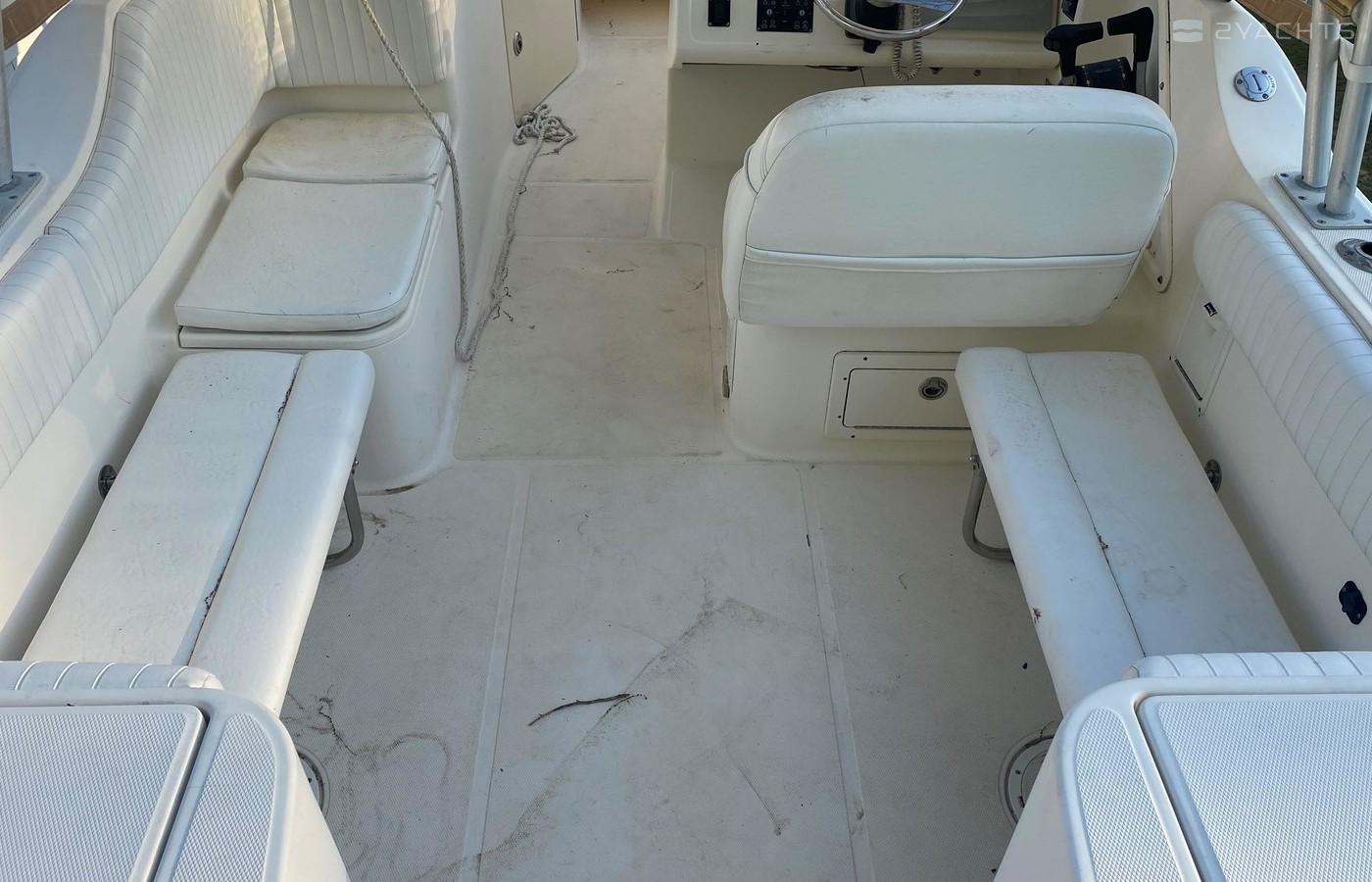 This boat is fully ready to go with only 700 hours on the engines!! This boat comes with everything fully equiped and ready to take on the water. The 270SD provides the ultimate combination of luxurious amenities and tournament fishing features for total fun and flexability on the water... the SUV of the boating world. The patented Vectorflo hull design will ride the roughest waves and keep you safe and dry. Your crew will appreciate the convenience of the walkthrough transom, spacious changing area with enclosed head, sun lounge seats, freshwater shower and Clarion CD player with 6-disc changer. The cleverly designed cockpit provides a unique user-friendly fishing station with 250-quart insulated fish box, (2) 25-gallon lighted livewells with a 700-gph pumps and flow regulators.