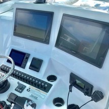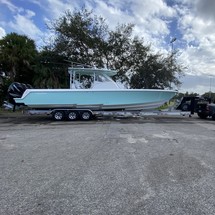 2019 39 Contender Fisharound. Triple 350 Mercury Verados approx 300 hours. WOT 67 mph best cruising is around 4500 rpm around 43 mph 1.2mpg depending on load. Gray Seadek throughout including cabin. Dual Garmin 16 inch displays, Radar, VHF, and flush mounted EPIRB. Bow thruster, taco Outriggers, 5Kw Phasor Diesel Generator has about 80 hours. Loaded! Gooseneck Ameratrail Trailer optional if needed. Kept on a covered lift in Sebastian, FL. Title in hand.