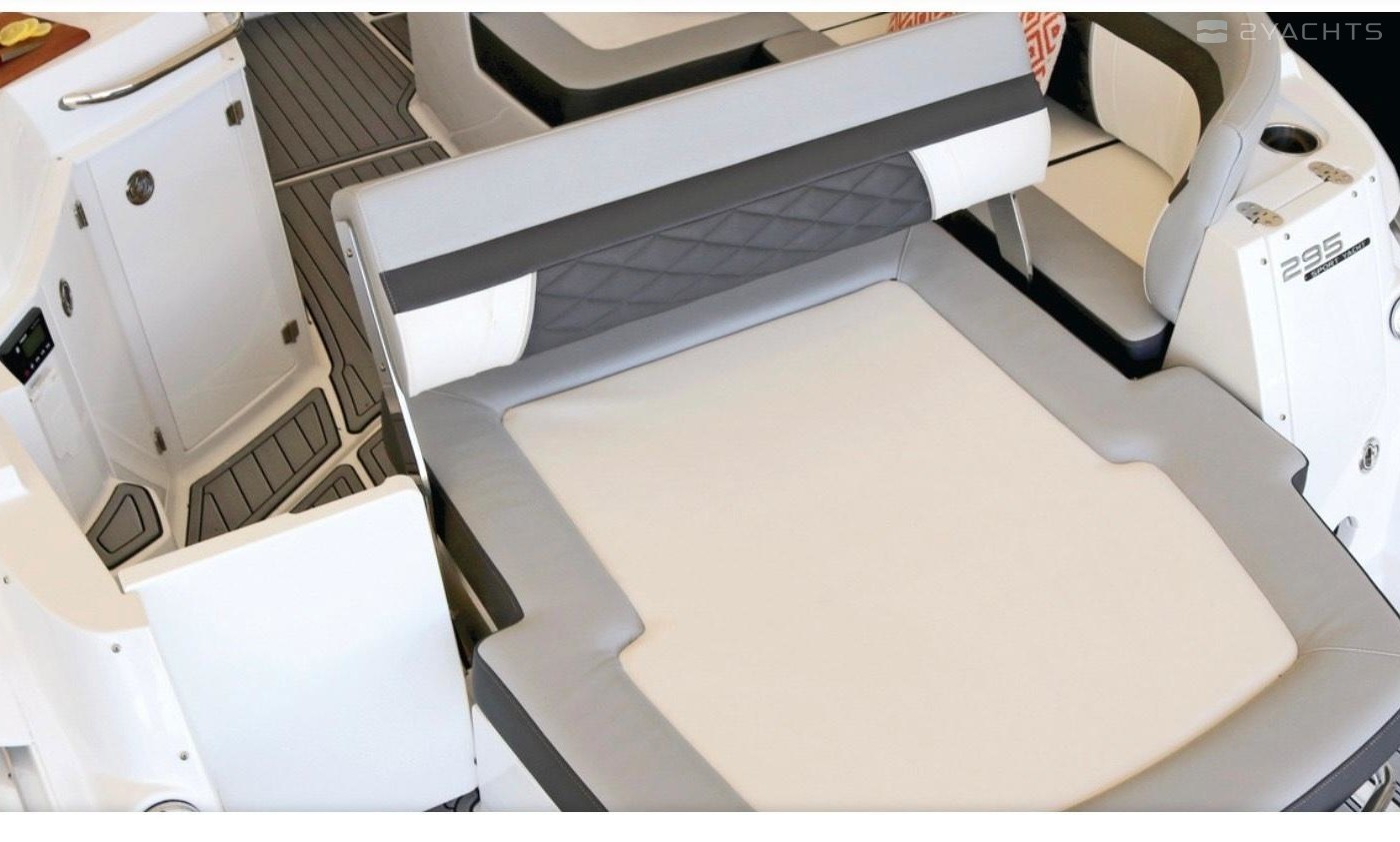 Sleek lines, powerful performance, and luxurious accommodations await you aboard the 295SY. This sport yacht is a captain's dream with its beautifully designed and intelligently laid out helm station, while a spacious cockpit with generous seating offers passengers the perfect space to enjoy the weather or take in views from every angle. Perfectly designed cabin steps usher you below deck where you'll find a comfortable bed, intimate dining area and full-service galley creating the perfect place for a romantic getaway.