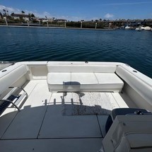 Forward there are V-berths with a filler for a wide double berth, deck hatch above for light and ventilation. Starboard side storage/hanging locker and enclosed head aft. Across to port side is the galley with manual and hot and cold pressure water, molded-in sink, 2 burner alcohol/electric stove, microwave, Norclod 110/12 volt refrigerator and storage space. Up two steps through the companionway is the large cockpit area with helm station with full intrumentation and electronics to starboard. Going aft and to port is a long U-Shaped lounge seat with table. This section is covered by a custom hard-top with full Isenglass enclosure. The 57 Sq. ft. ]fishing cockpit has two fish boxes, 3-scoop bait tank, rocket launchers and storage. The hard-top, Isenglass, and electronics were all updated in 2020/2021.